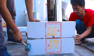 Gunakan Palu Karet untuk memastikan kerataan susunan bata ringan, ulangi cara ini hingga memenuhi bidang pengerjaan.