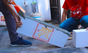 Letakkan Bata Ringan berikutnya kemudian gunakan waterpass untuk memastikan kerataan ke dua Bata Ringan Tersebut.